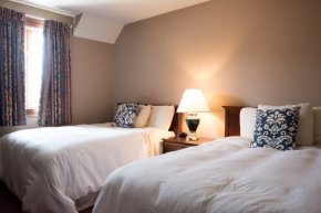 The Jacuzzi Room has a breathtaking view of the front lawn and is beautifully designed with Two Queen Beds and a pull out sofa bed. Perfect for a romantic getaway or relaxing weekend, the Jacuzzi Tub melts the stress away. Includes a 32” flat screen TV, in-room coffee, refrigerator, make up mirrors, cozy velour robes and mini bar.